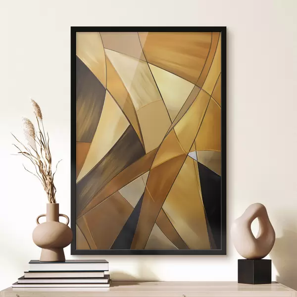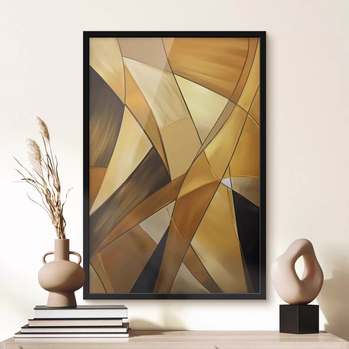 Poster Forme geometrice abstracte în nuanțe de portocaliu, maro și alb, cu contururi subțiri pe un fundal texturat Nr f47864