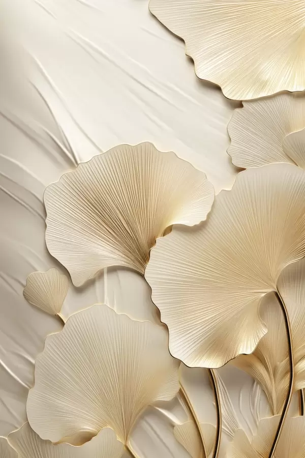Poster Frunze abstracte de ginkgo pe un fundal texturat, deschis la culoare, compoziție elegantă și abstractă Nr f47867