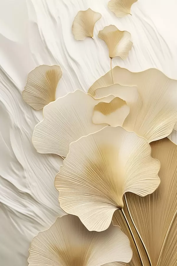 Poster Frunze abstracte de ginkgo pe un fundal texturat, deschis la culoare, compoziție elegantă și abstractă Nr f47868