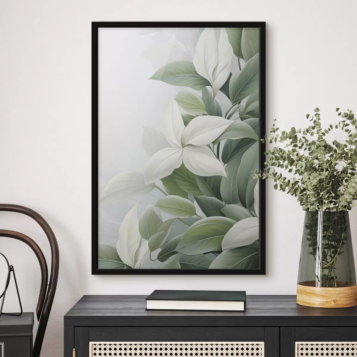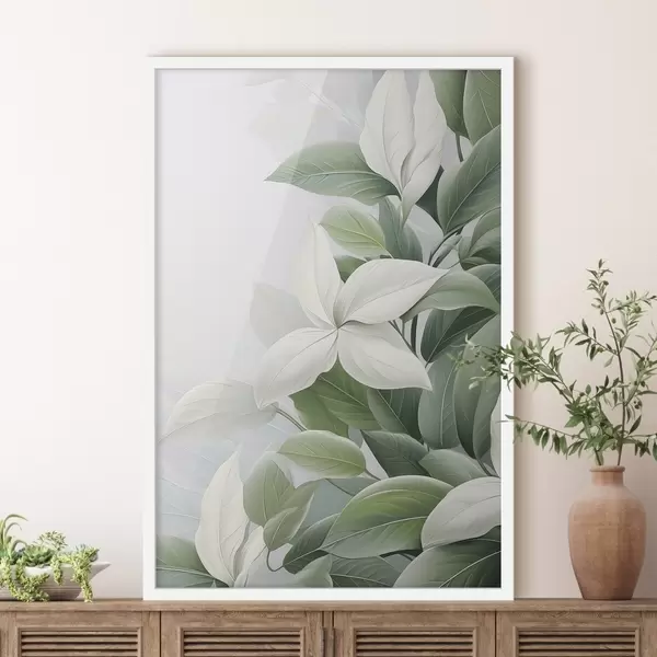 Poster Flori albe cu frunze verzi, fundal pastelat Nr f47870