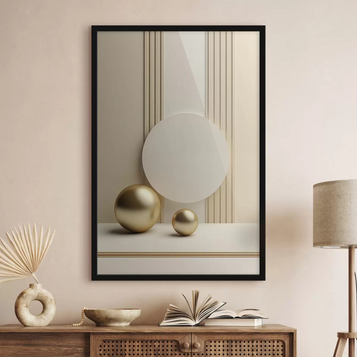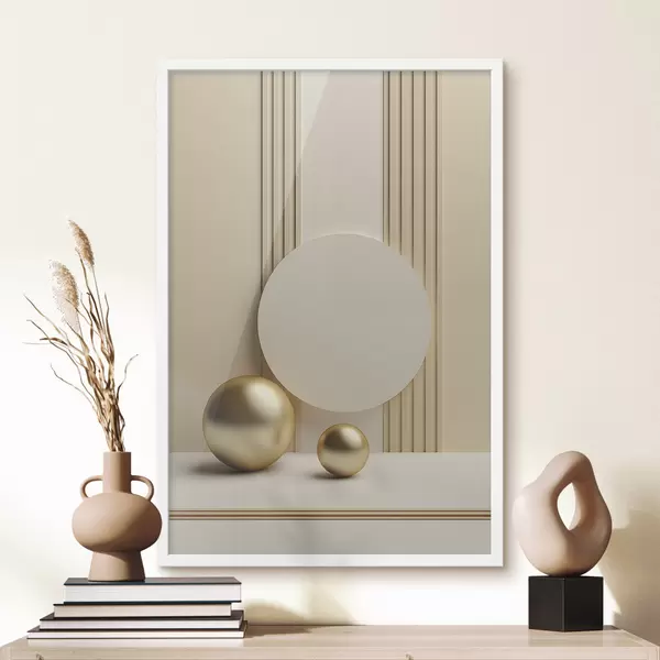 Poster Artă modernă abstractă în nuanțe de bej, cu linii verticale și sfere f47872