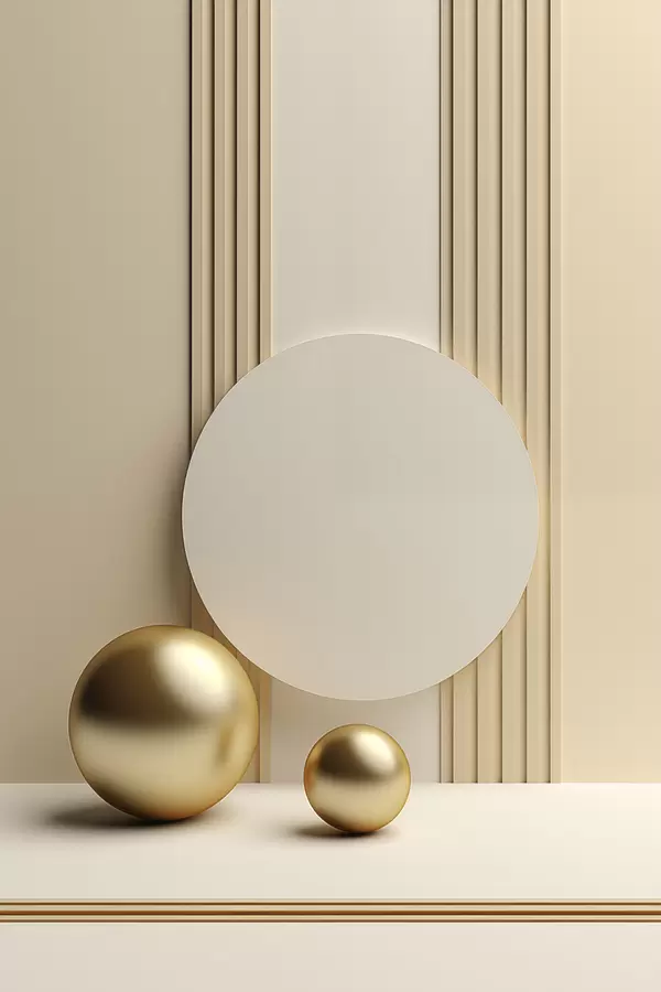 Poster Artă modernă abstractă în nuanțe de bej, cu linii verticale și sfere f47872