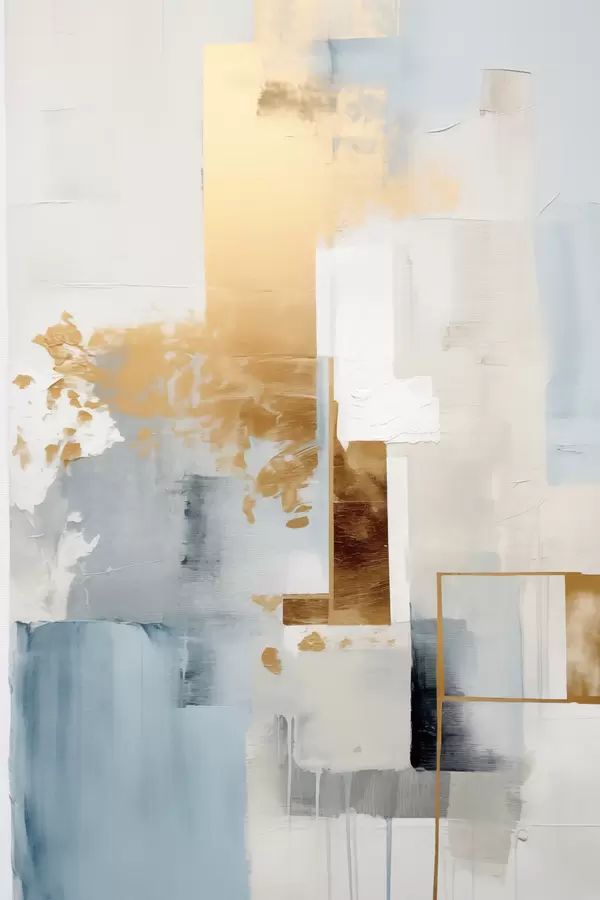 Poster Forme geometrice abstracte în culori galben, albastru și alb, compoziție texturată și minimalistă Nr f47881