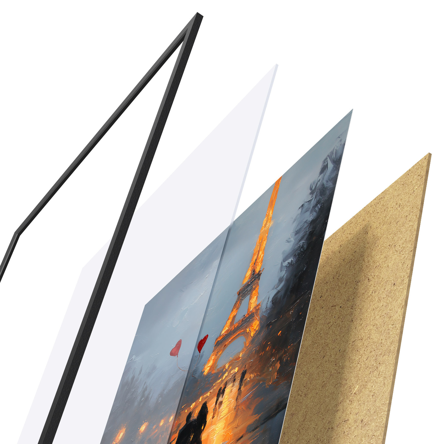 Afișul constă dintr-o ramă, plexiglas, imagine imprimată și suport din PAL. Posterul poate fi agățat imediat pe perete datorită suporturilor de pe spate.