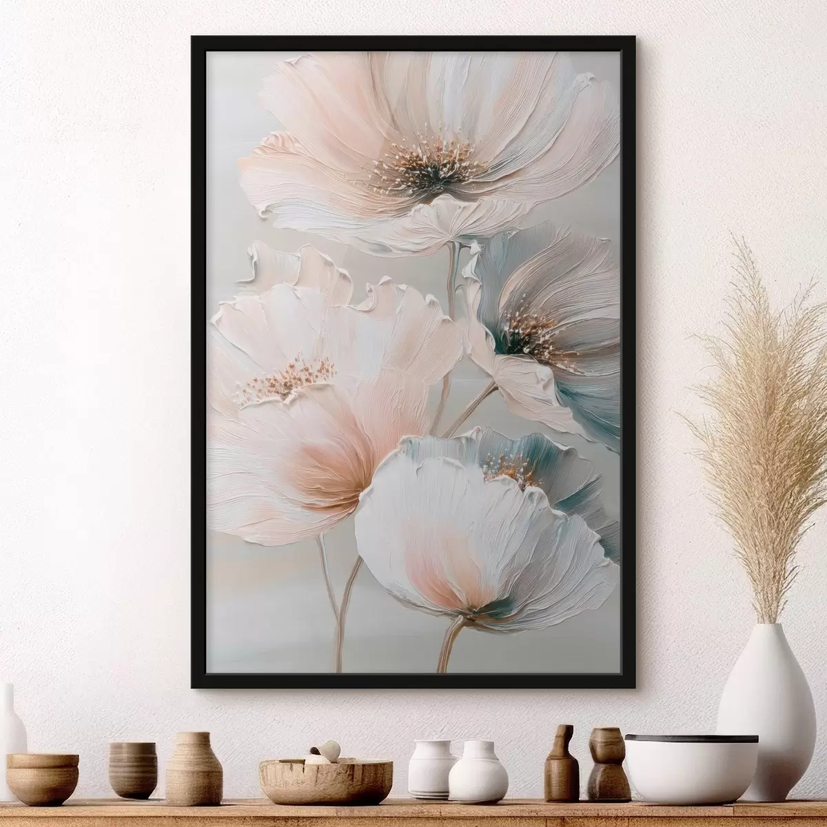 Poster Compoziție florală cu tușe texturate într-o paletă de culori bej-roz Nr f47961