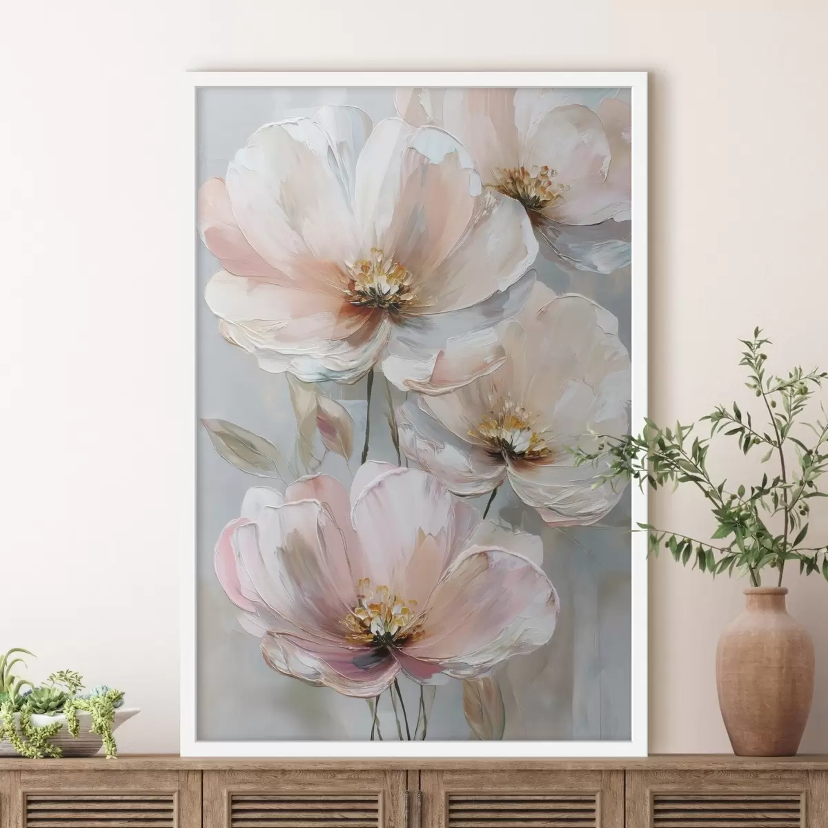 Poster Flori alb-roz cu tușe expresive în stilul picturii în ulei Nr f47962