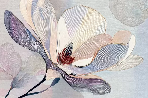 Poster Flori de magnolie stilizate cu contururi rafinate Nr f47968