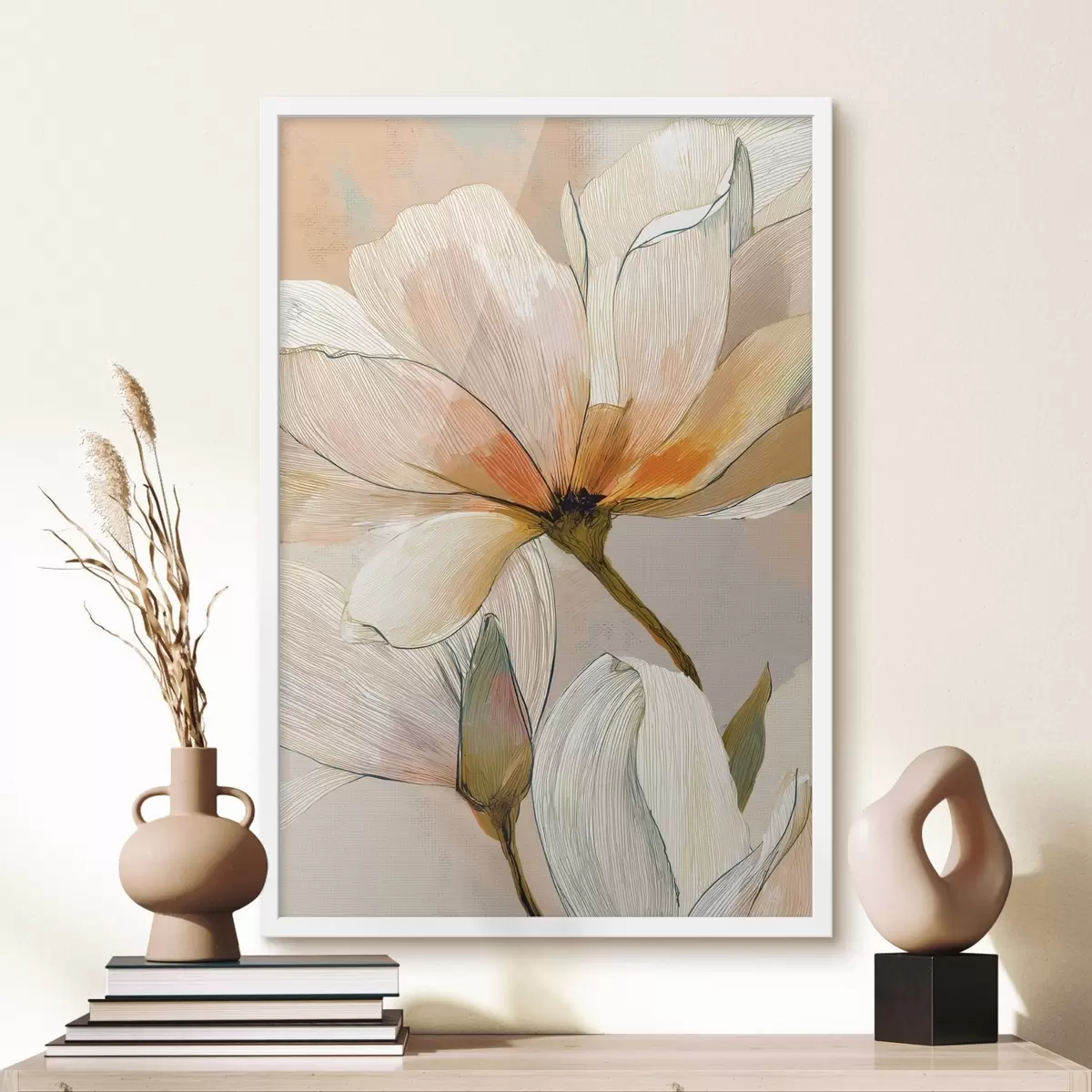 Poster Compoziție florală în tonuri de piersică și albastru f47969