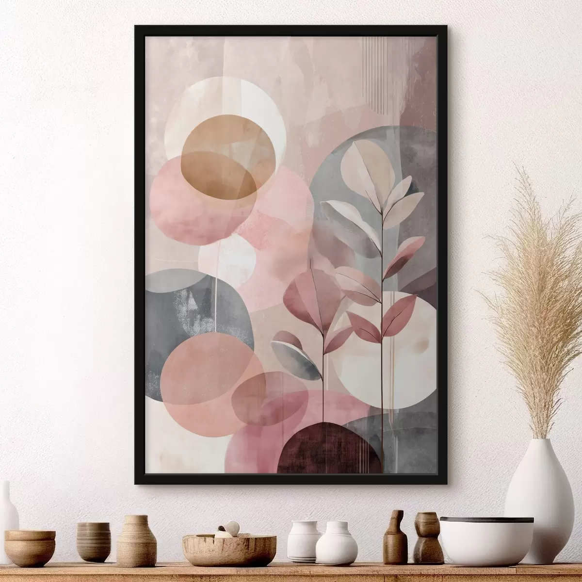 Poster Compoziție abstractă cu cercuri într-o paletă de culori teracotă-roz Nr f47977
