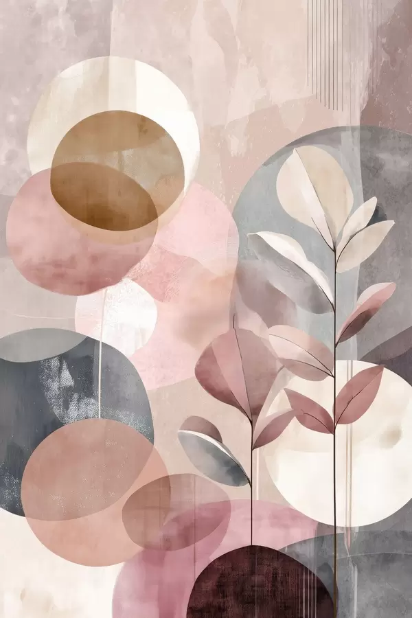 Poster Compoziție abstractă cu cercuri într-o paletă de culori teracotă-roz Nr f47977