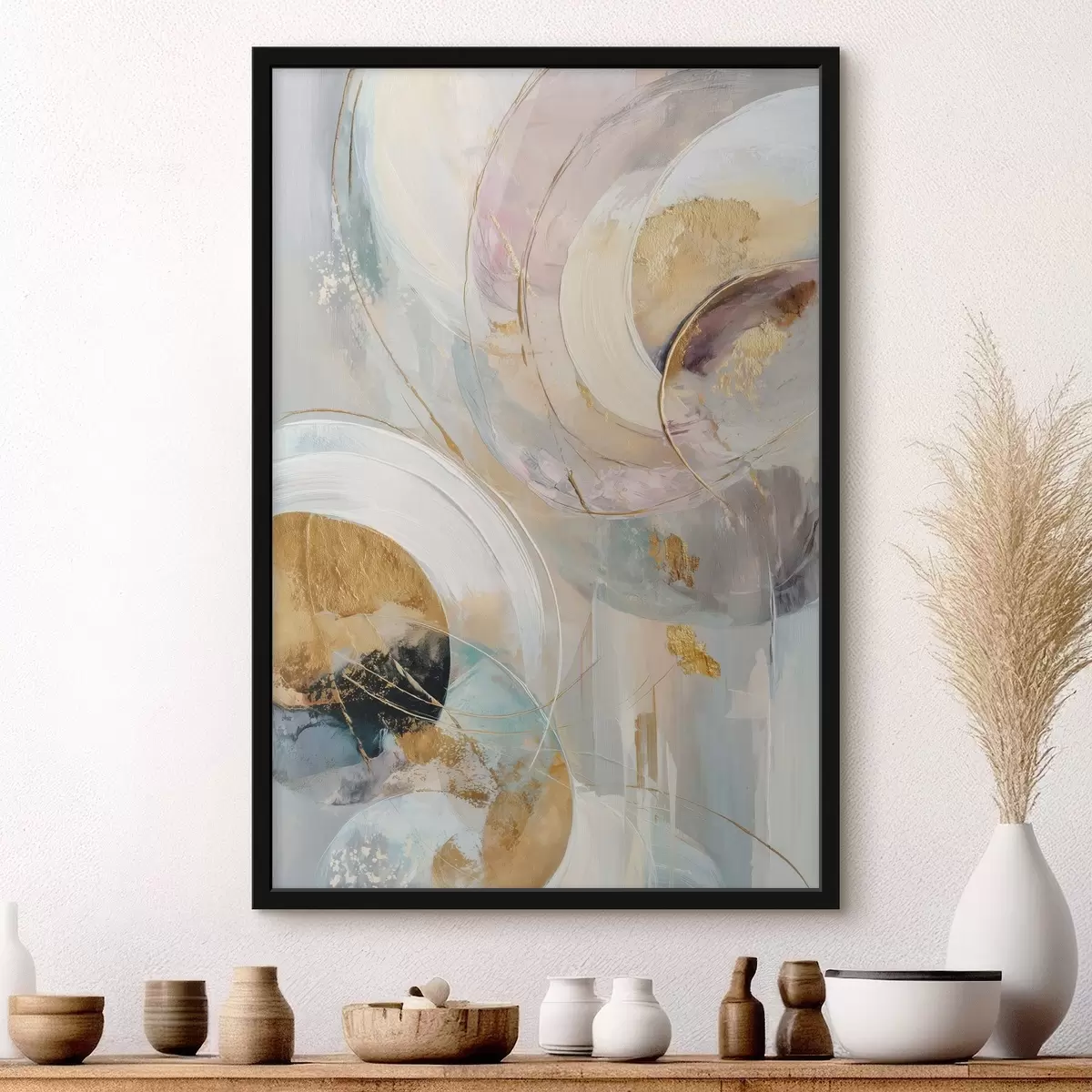 Poster Compoziție cu elemente circulare stratificate și tușe de vopsea Nr f47983