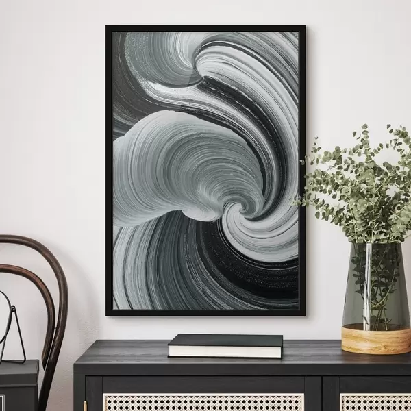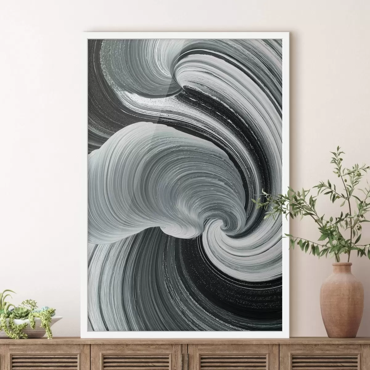 Poster Energia mișcării: abstract alb-negru în stilul picturii în ulei Nr f47990