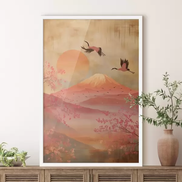 Poster Macarale pe fundalul soarelui și al munților: ilustrație în stilul artei digitale f47992