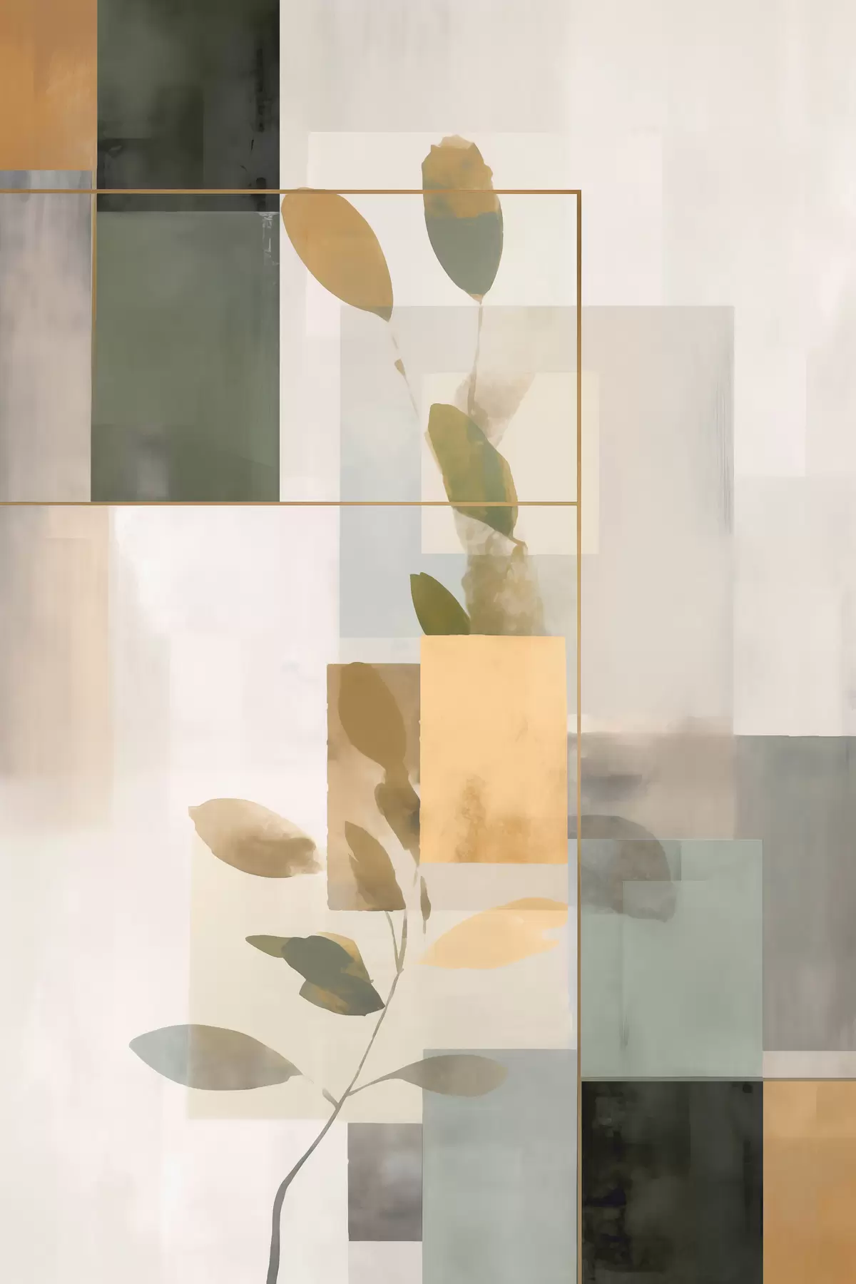 Poster Abstracție geometrică cu ramuri de frunze f48020
