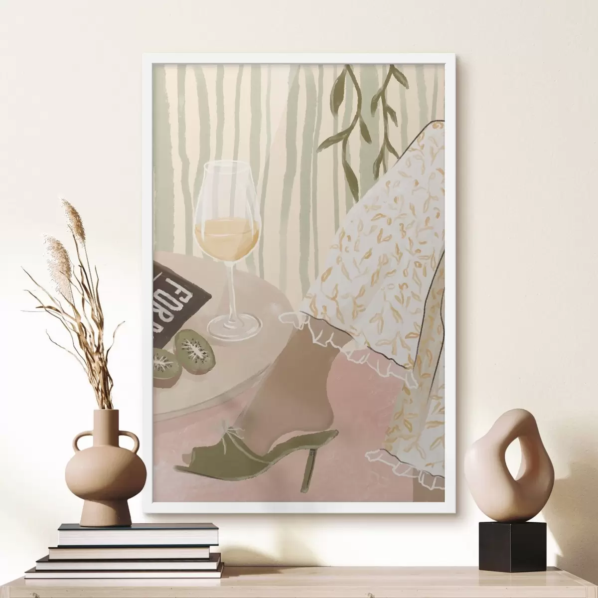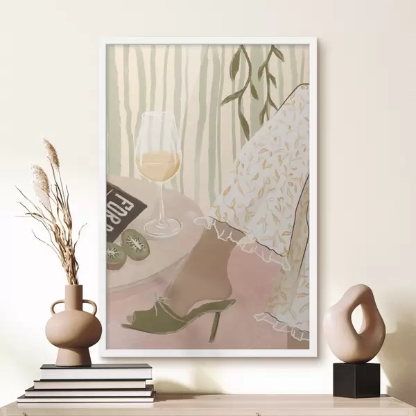 Poster Masă cu pahar de vin și kiwi lângă rochie Nr f48021