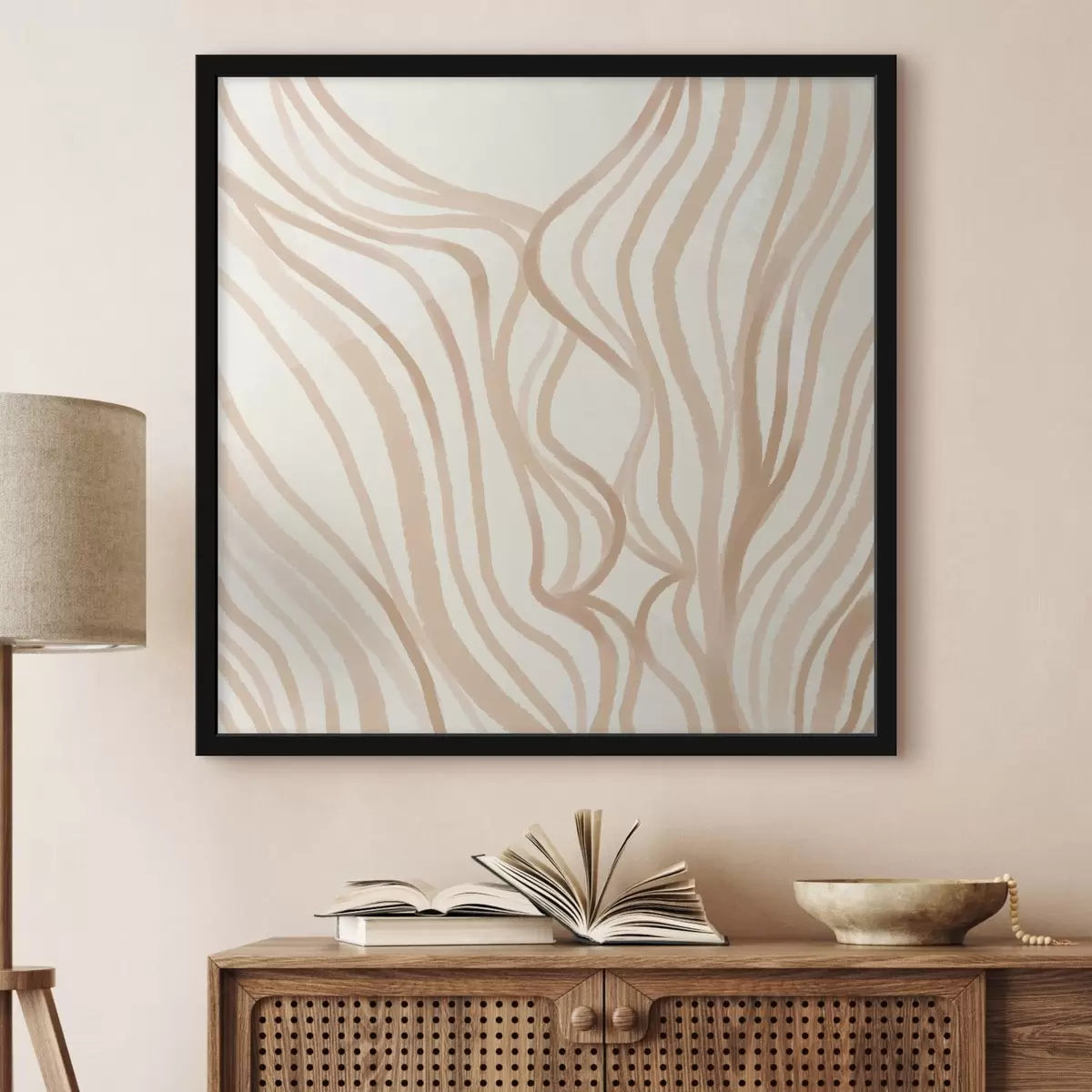 Poster Linii abstracte ondulate în nuanțe de bej Nr f48027