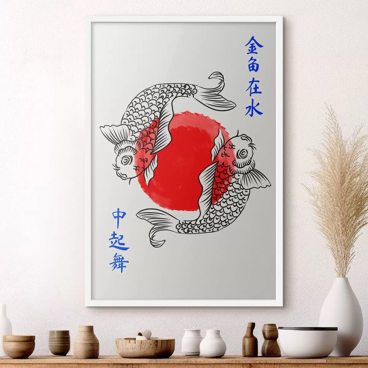 Poster Doi pești ornamentali în jurul unui cerc roșu f48033