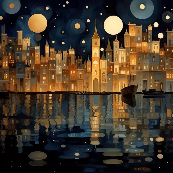 Poster orașul capricios noaptea, lângă apă Nr f48063