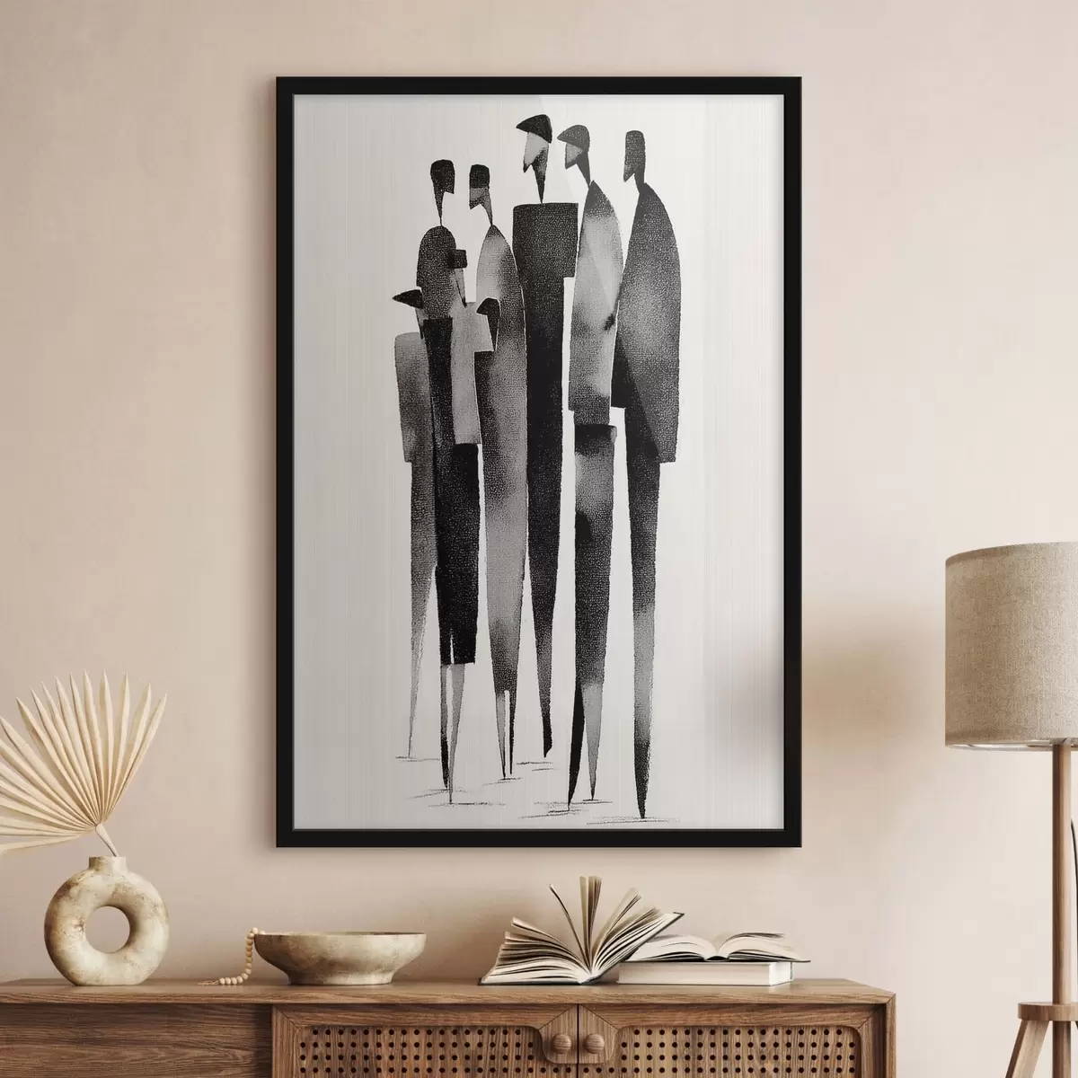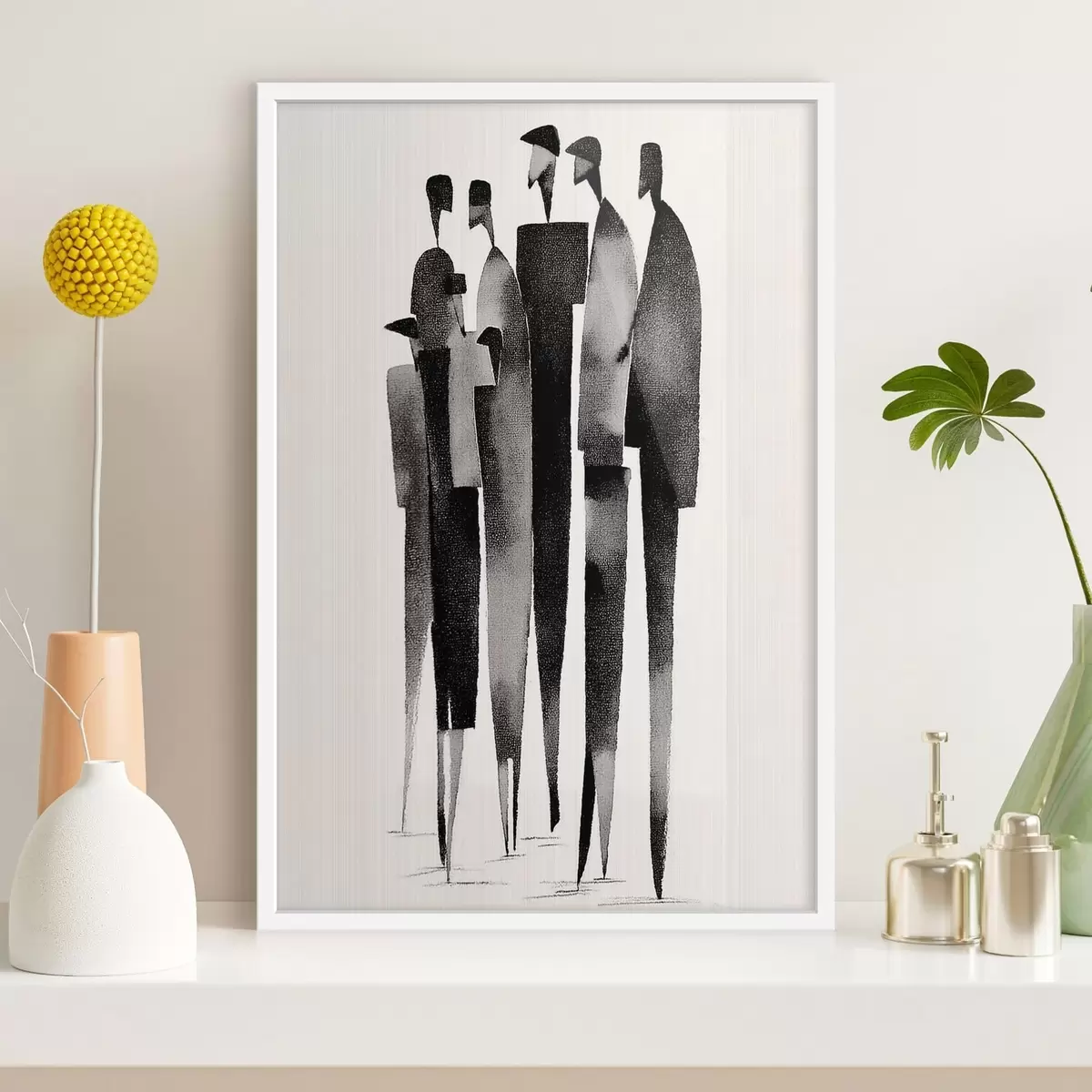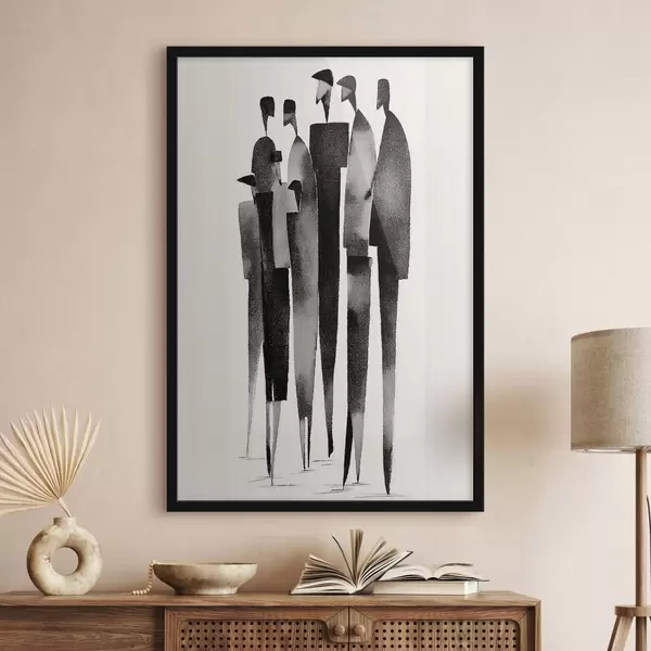 Poster figuri umane minimaliste, alungite, stând în șir f48068