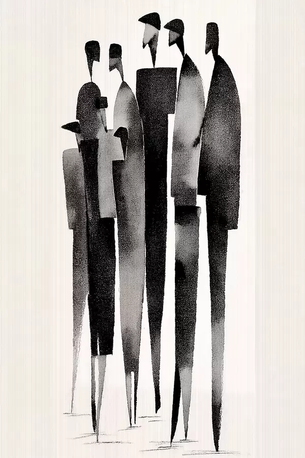 Poster figuri umane minimaliste, alungite, stând în șir f48068