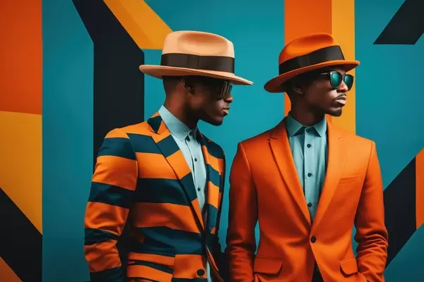Poster Doi bărbați în costume și pălării strălucitoare f48091