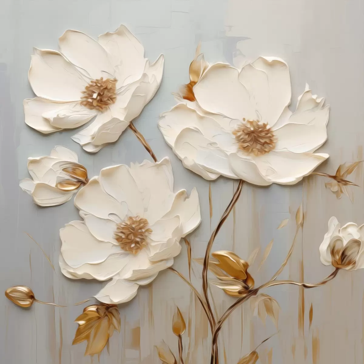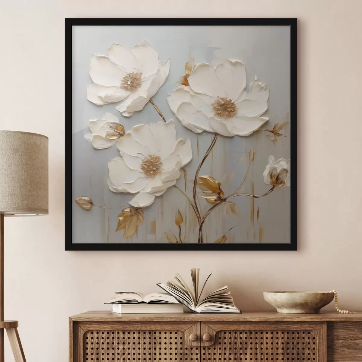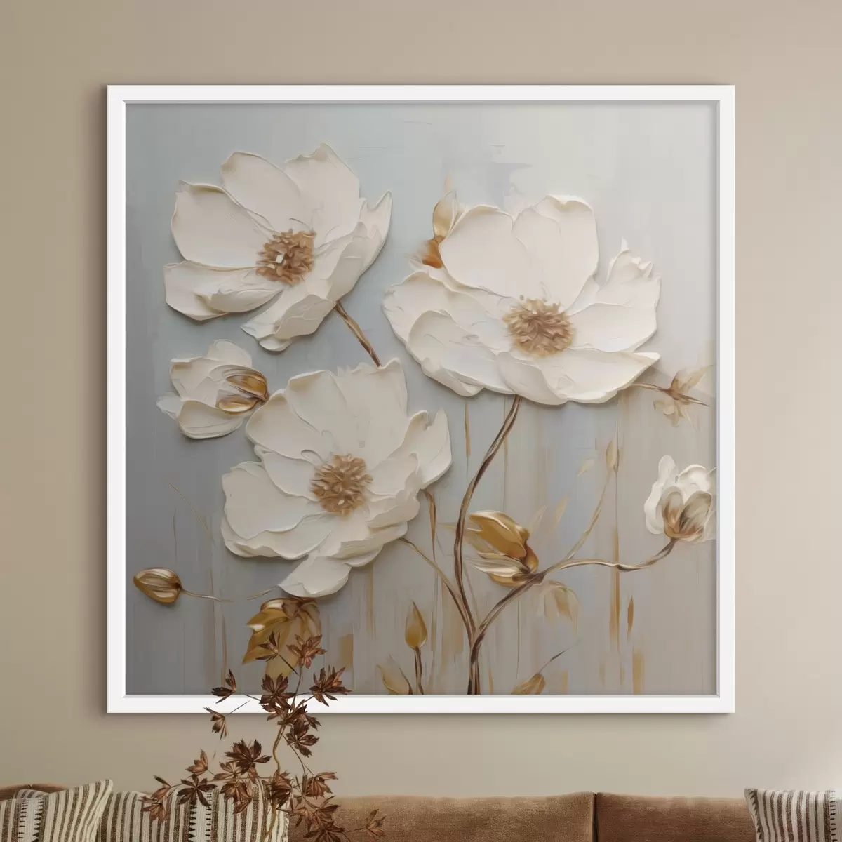 Poster Flori albe în relief cu frunze calde Nr f48093