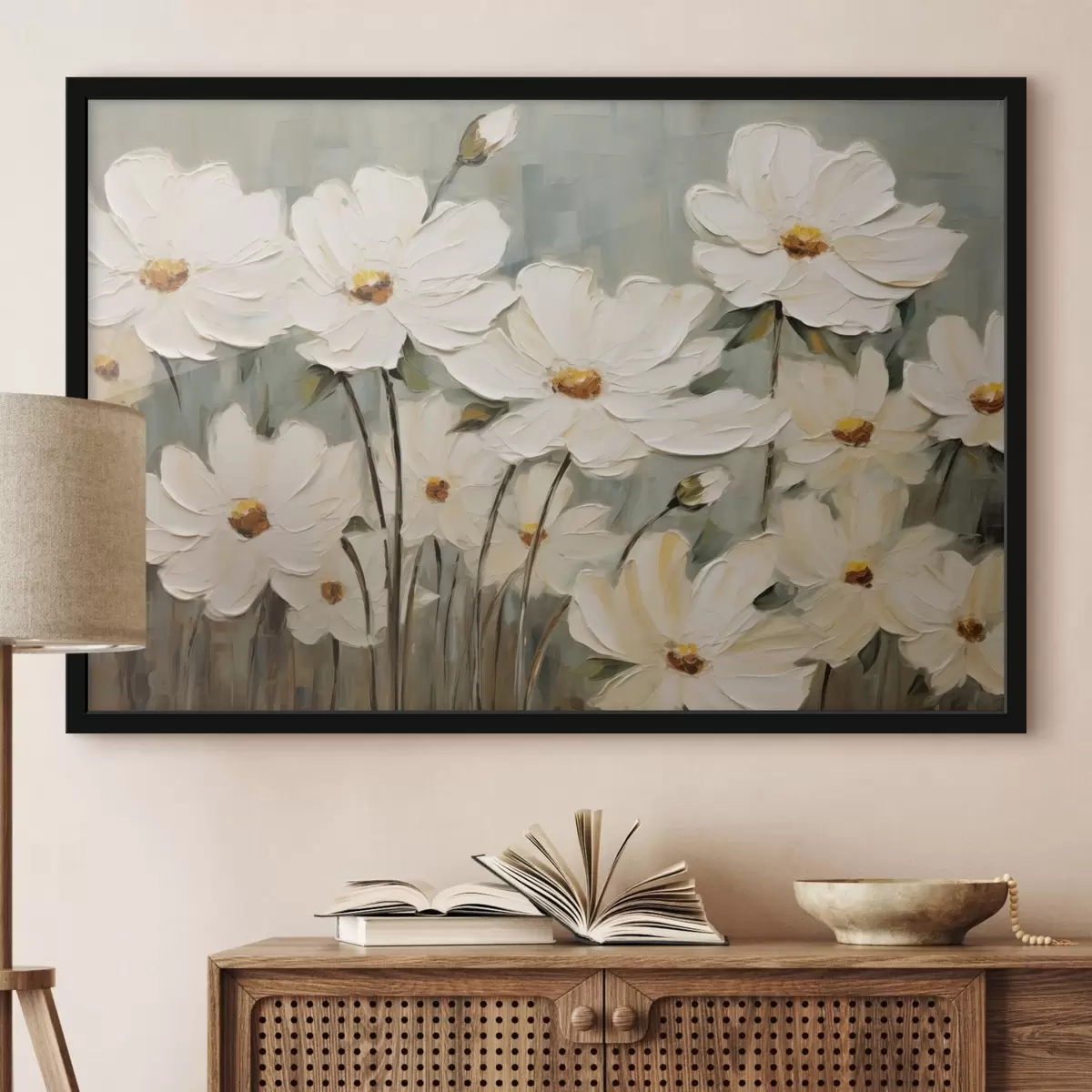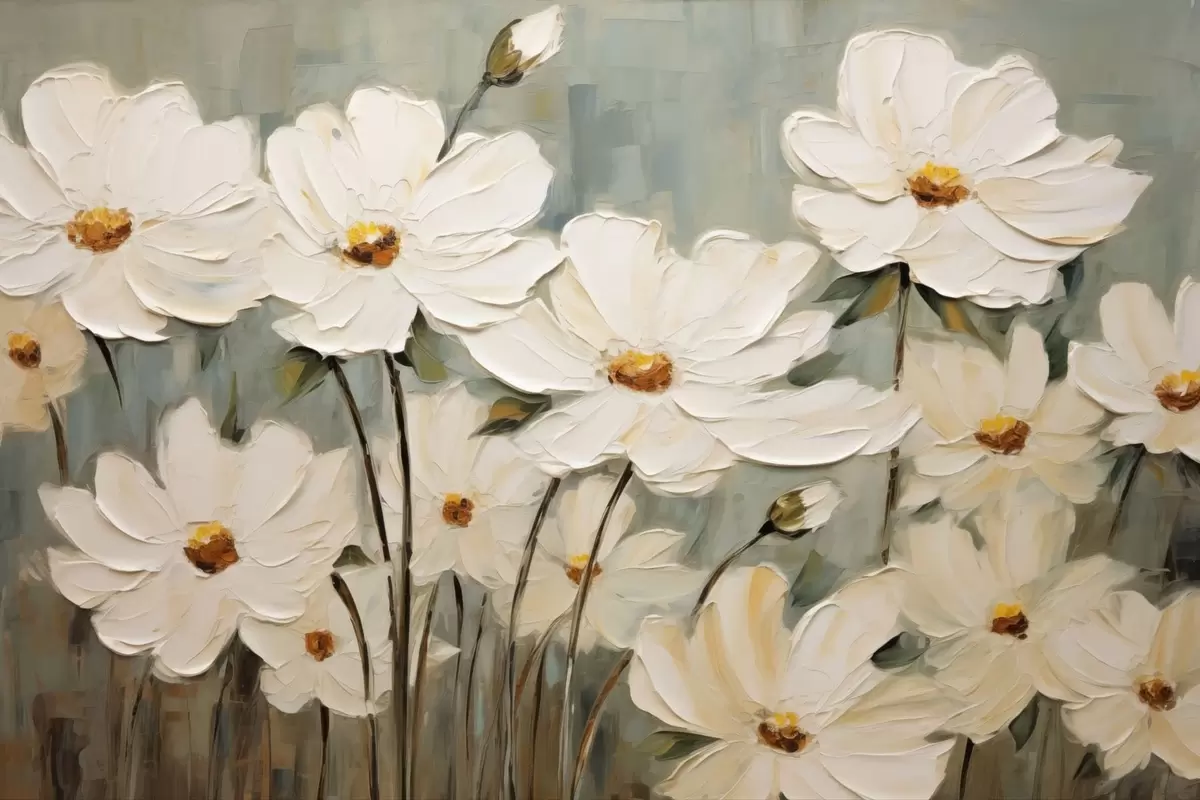 Poster Flori albe pe fundal texturat, pensule Nr f48094