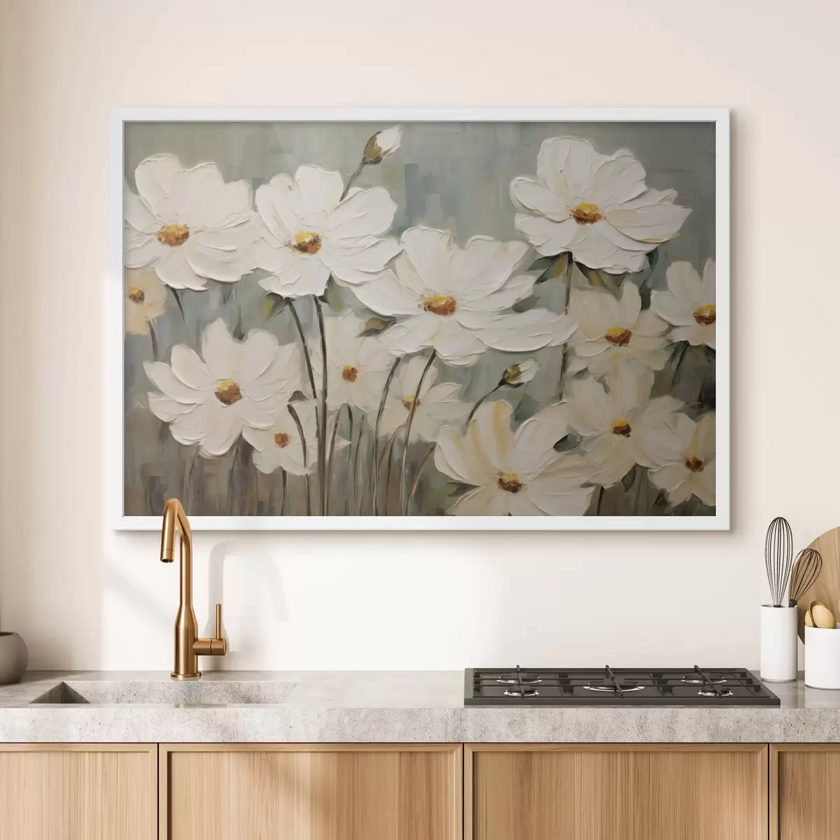 Poster Flori albe pe fundal texturat, pensule f48094