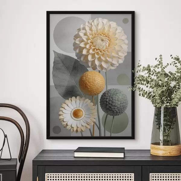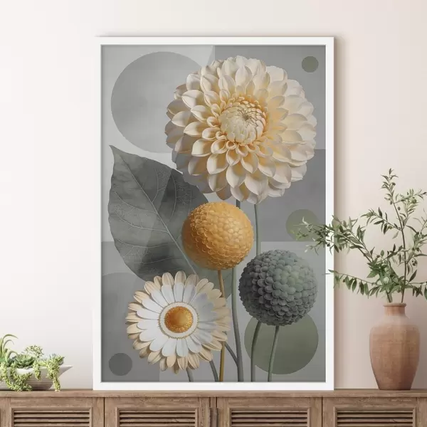 Poster Flori abstracte mari cu elemente geometrice Nr f48178