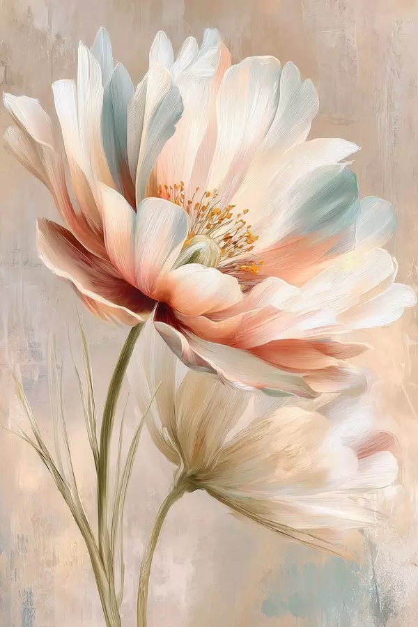 Poster Bujori delicați în nuanțe de bej și coral, în stil pictură în ulei f48184