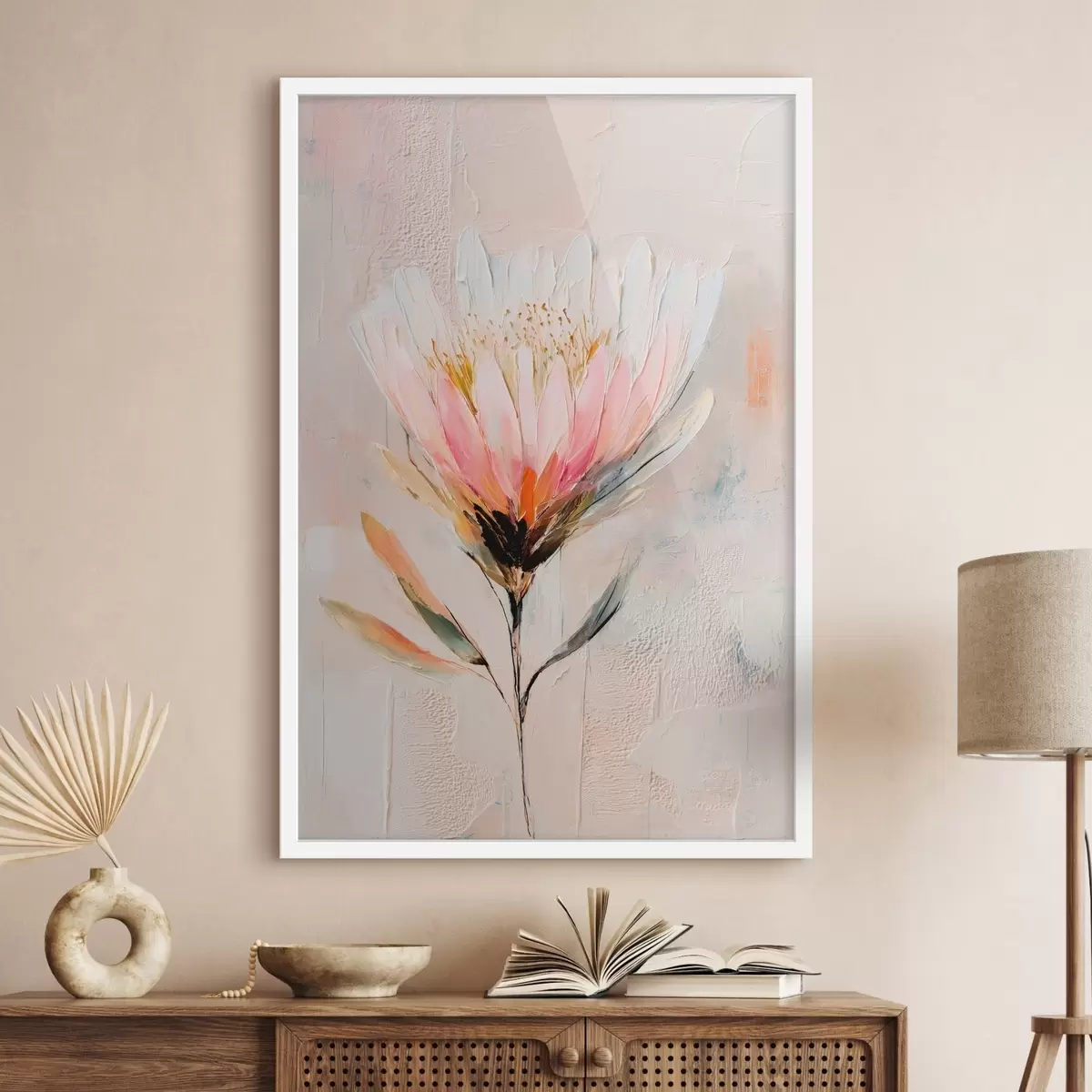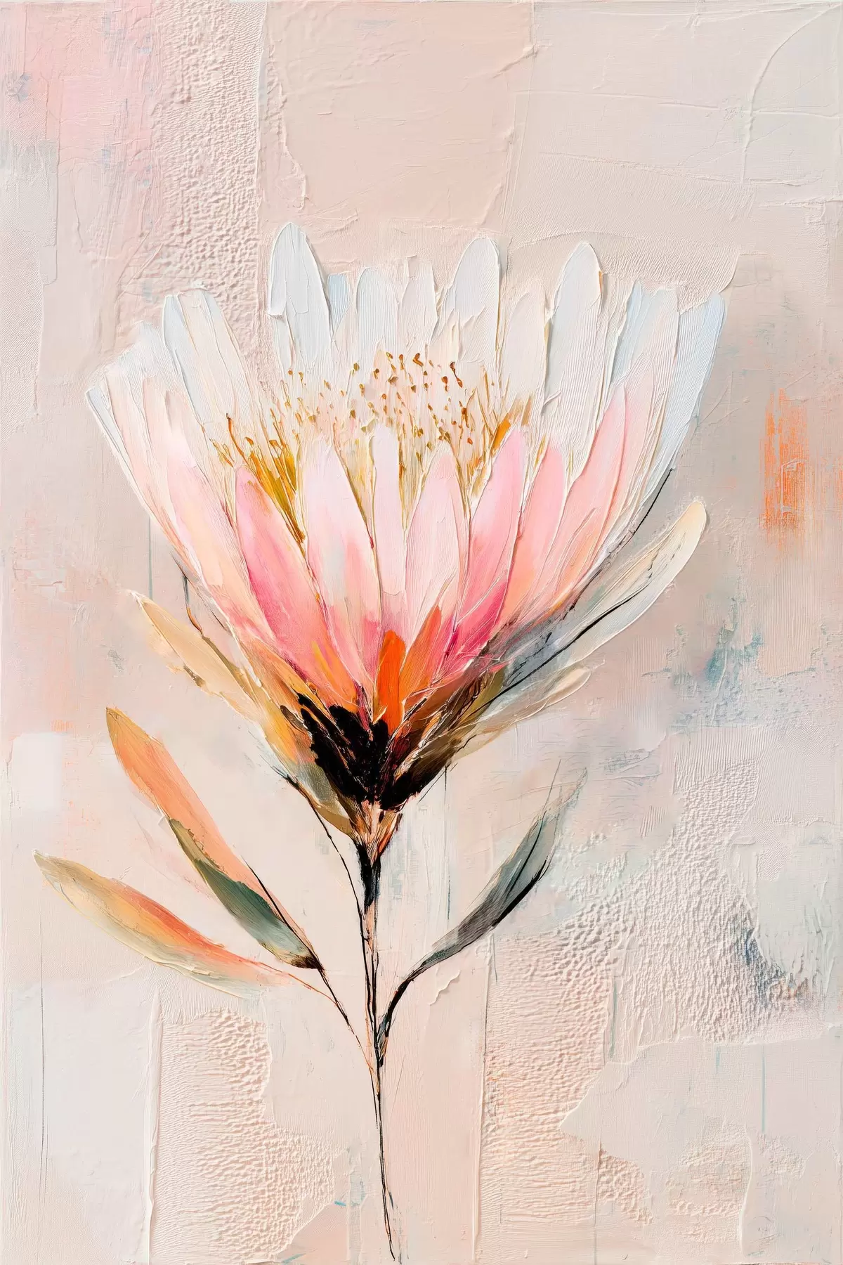 Poster Floare de protea în nuanțe delicate de roz, în stil pictură în ulei Nr f48205