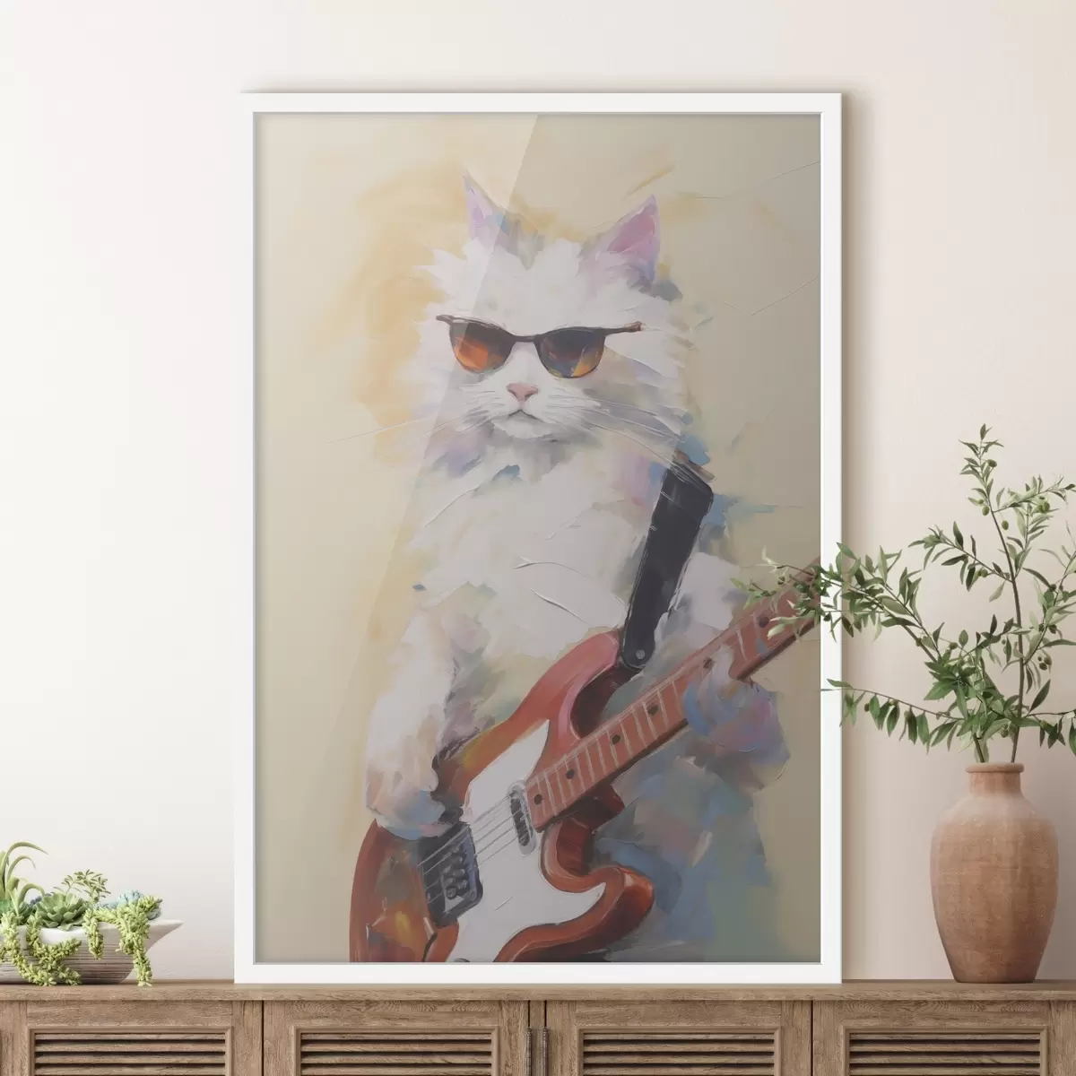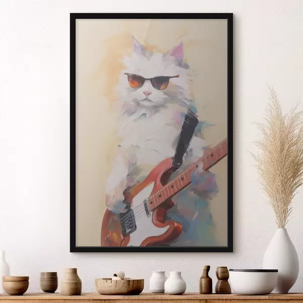 Poster Pisică cu o pictură imitație de chitară f48274