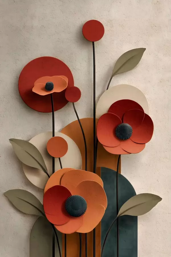 Poster flori într-un stil simplificat, cu efect de volum Nr f48293