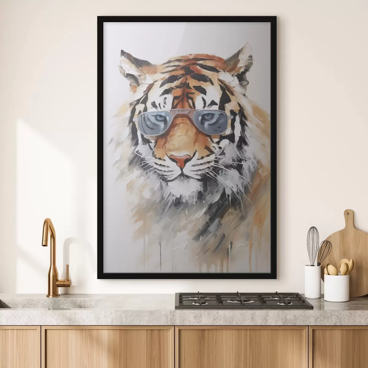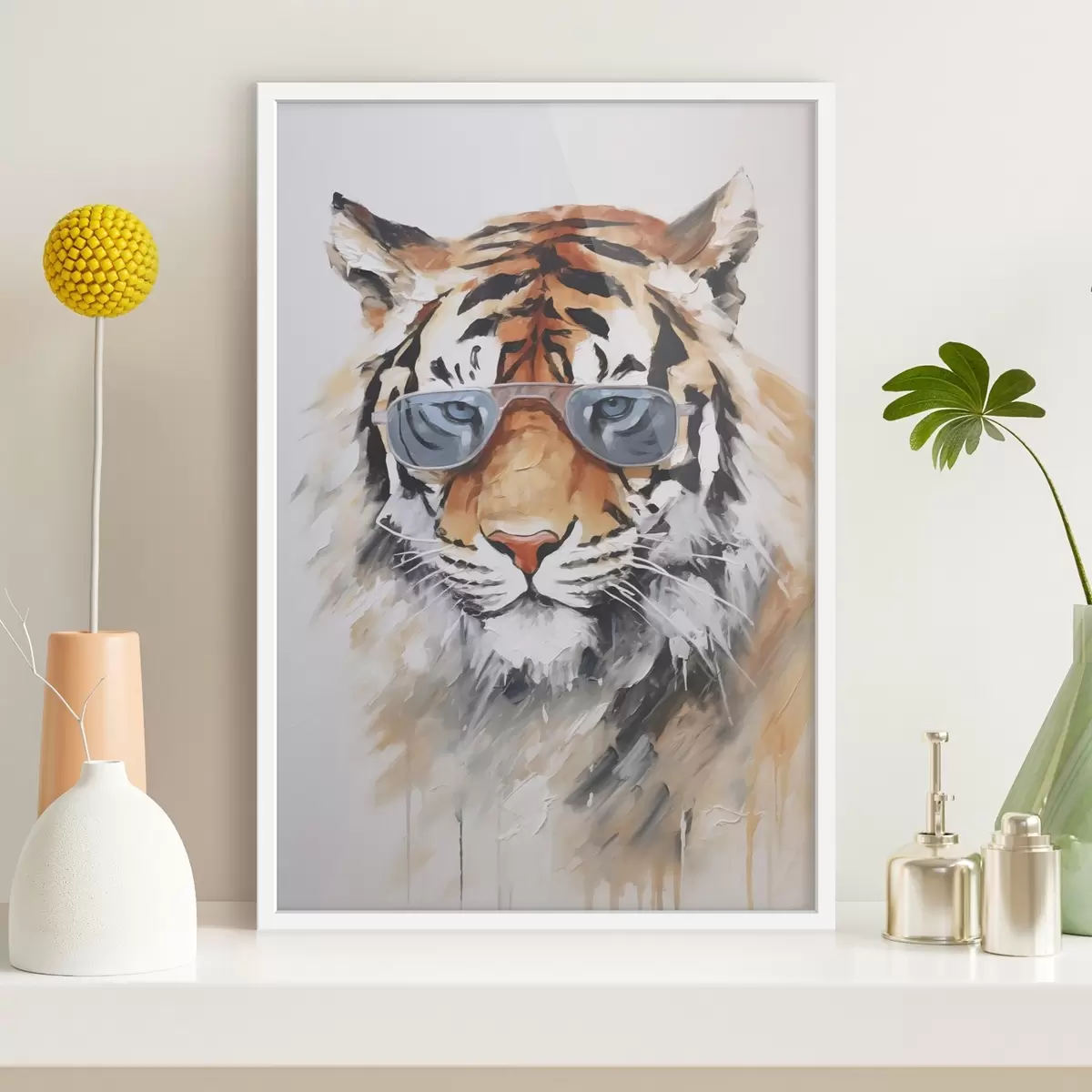 Poster Tigru cu ochelari, pictură imitație Nr f48319