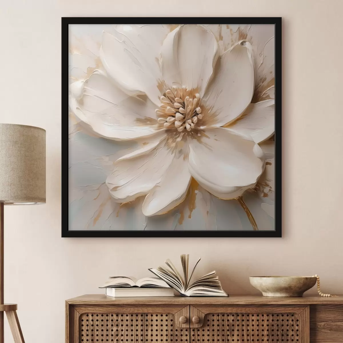 Poster Floare albă cu textură, în nuanțe delicate f48339
