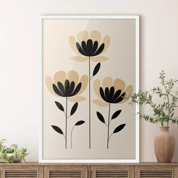 Poster Flori în stil minimalist, în nuanțe de negru și bej f48353