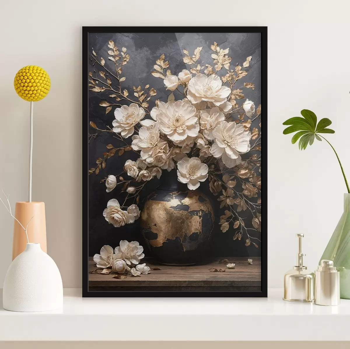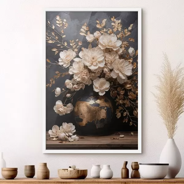 Poster Flori delicate într-o vază, însoțite de frunze decorative Nr f48356