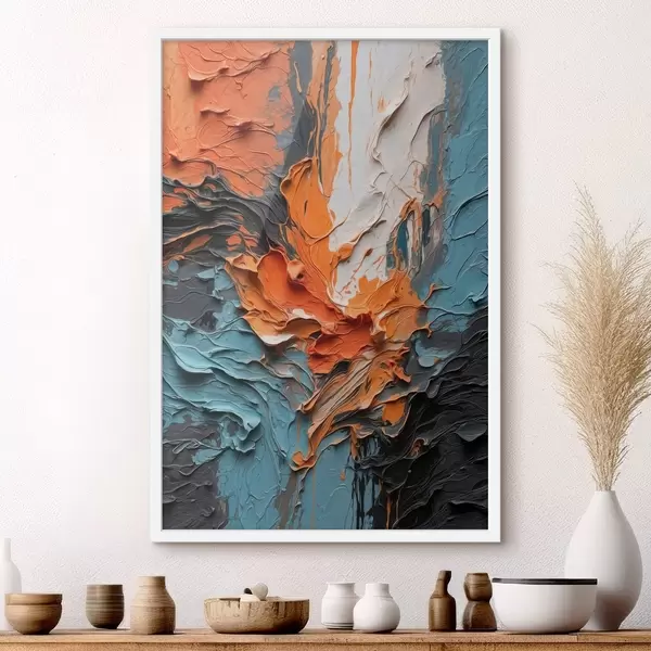 Poster Tușe abstracte luminoase în nuanțe de portocaliu și albastru f48359