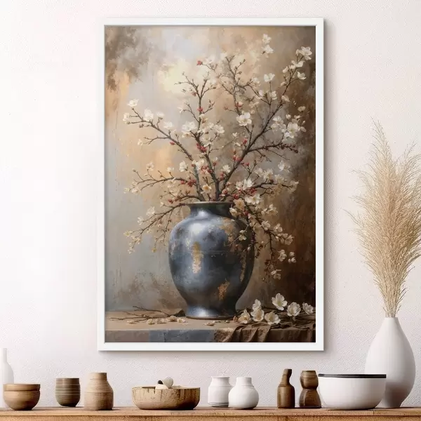 Poster Ramuri înflorite într-o vază pe un fundal neutru f48361