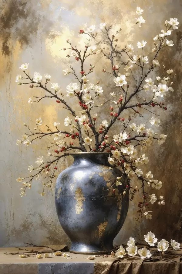 Poster Ramuri înflorite într-o vază pe un fundal neutru Nr f48361