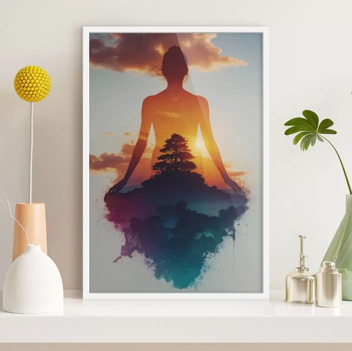 Poster Siluetă umană pe fundalul unui peisaj cu apus de soare Nr f48364