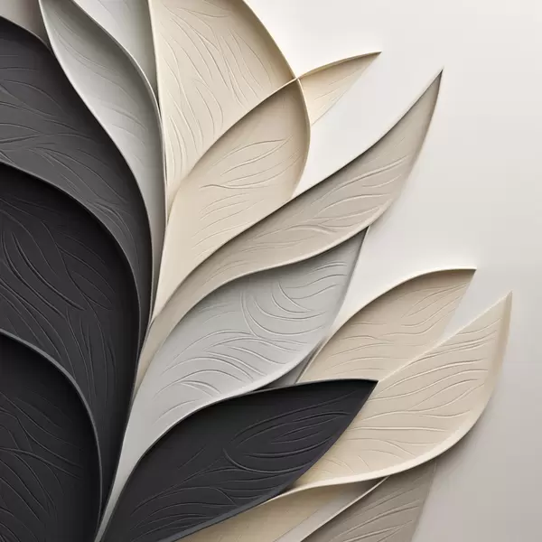 Poster Compoziție abstractă din frunze suprapuse, forme curbe în nuanțe de negru, alb și bej, artă texturată Nr f48382