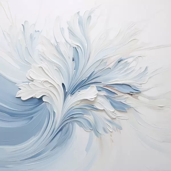 Poster Un model floral abstract în alb și albastru deschis, cu petale texturate și linii ondulate Nr f48395