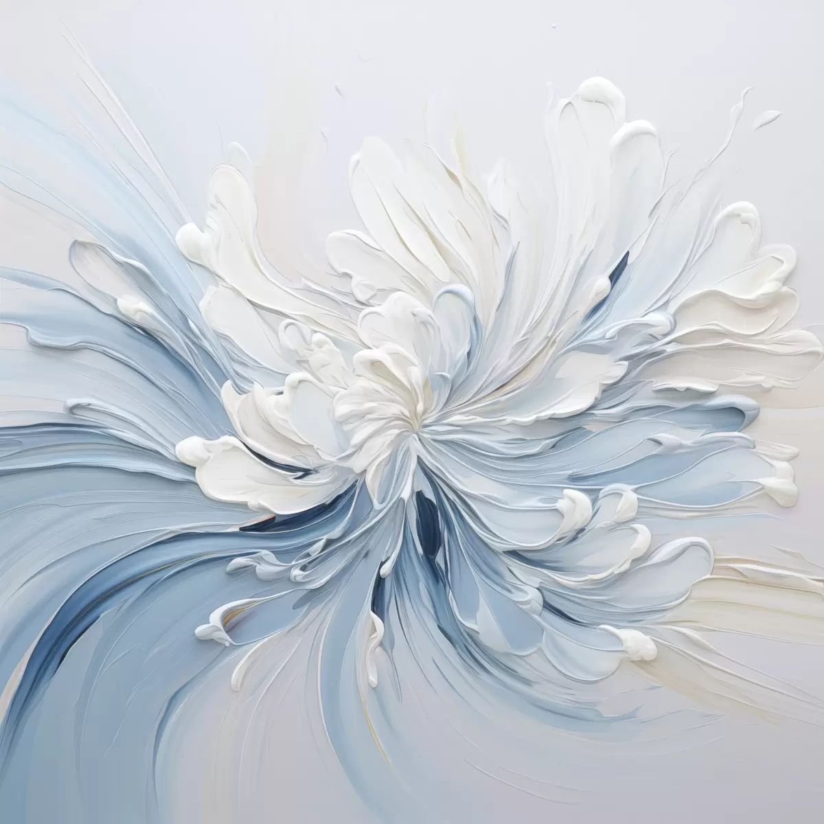 Poster Un model floral abstract în alb și albastru deschis, cu petale texturate și linii ondulate Nr f48396