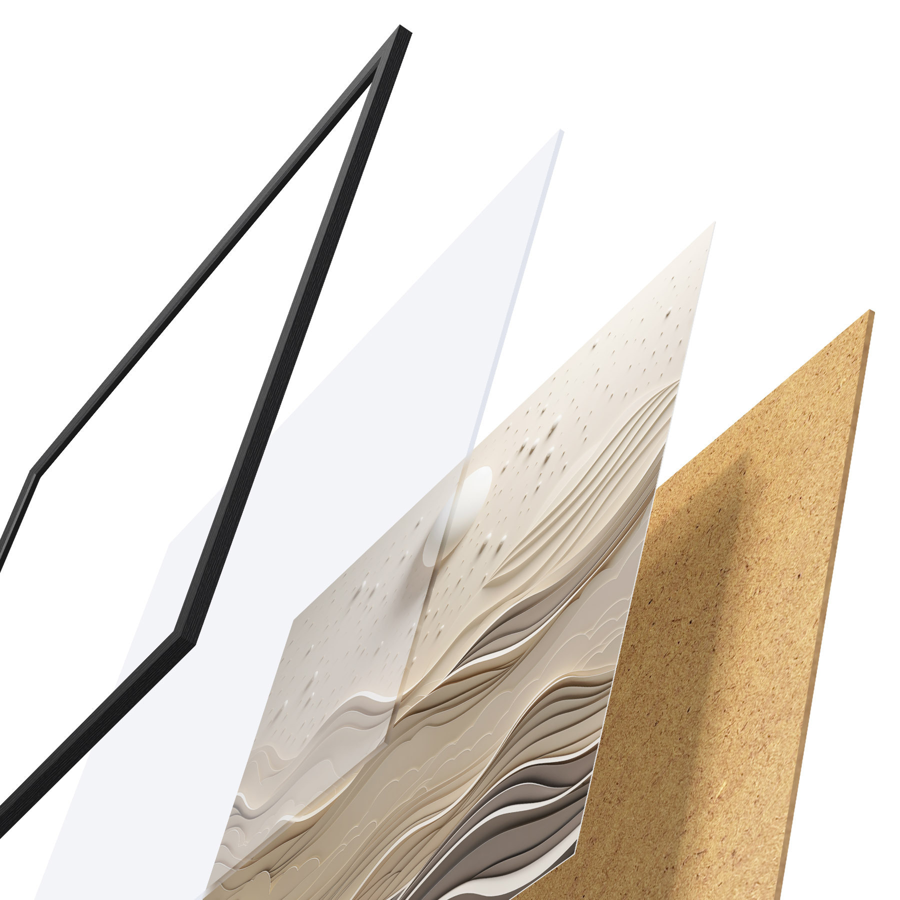 Afișul constă dintr-o ramă, plexiglas, imagine imprimată și suport din PAL. Posterul poate fi agățat imediat pe perete datorită suporturilor de pe spate.