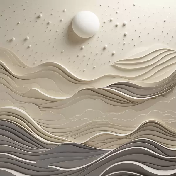 Poster Un peisaj minimalist stilizat, cu dealuri ondulate și o lună mare pe un cer înstelat, artă abstractă Nr f48402