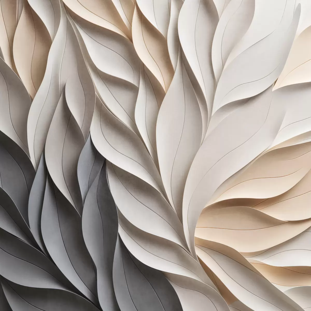 Poster Un model abstract cu frunze suprapuse, cu textură, în nuanțe neutre de bej, crem și gri Nr f48407