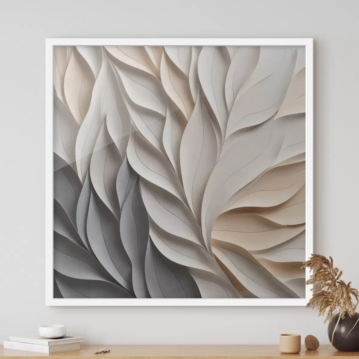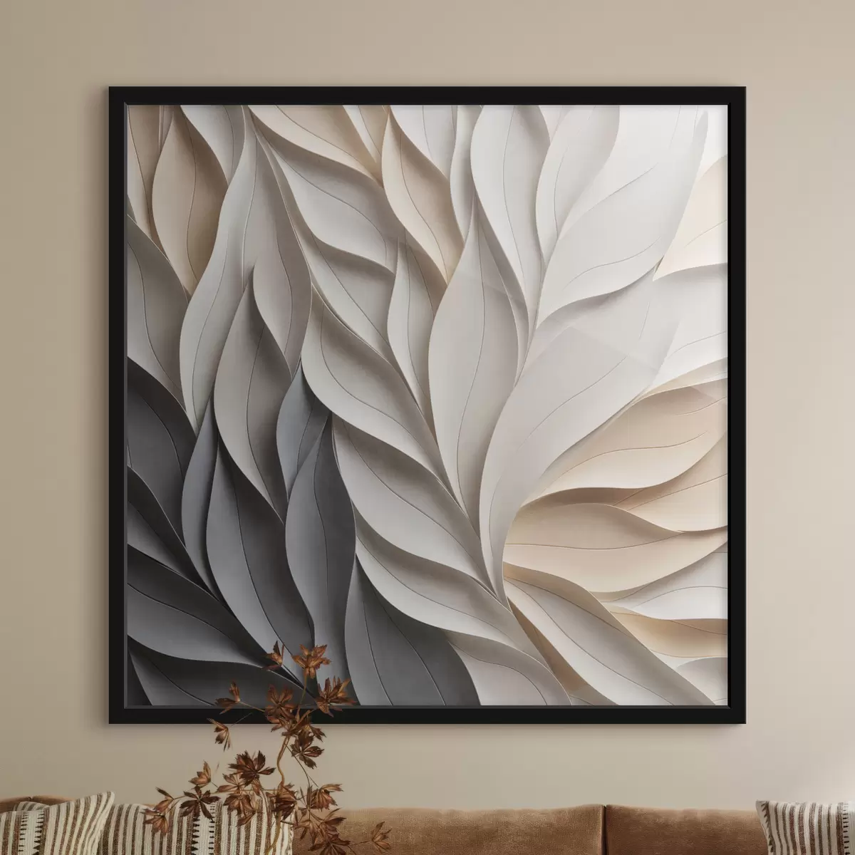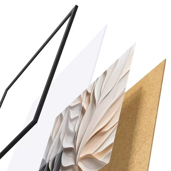 Poster Un model abstract cu frunze suprapuse, cu textură, în nuanțe neutre de bej, crem și gri f48407