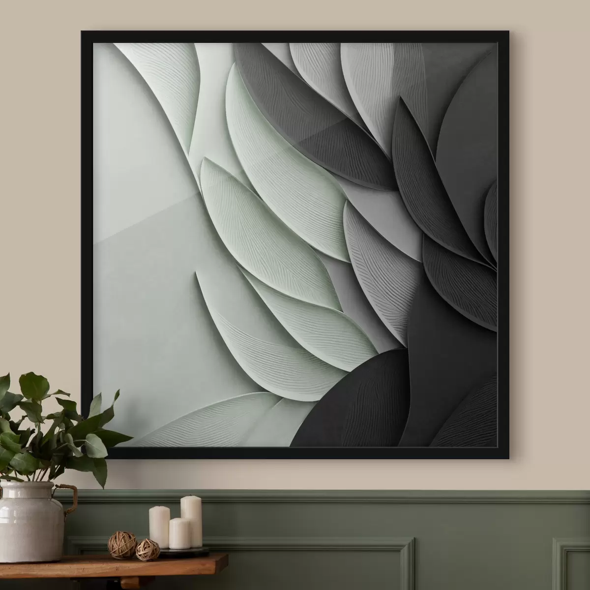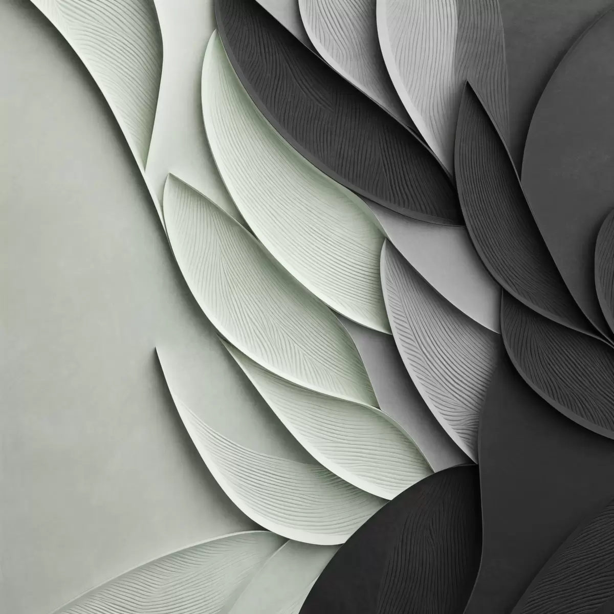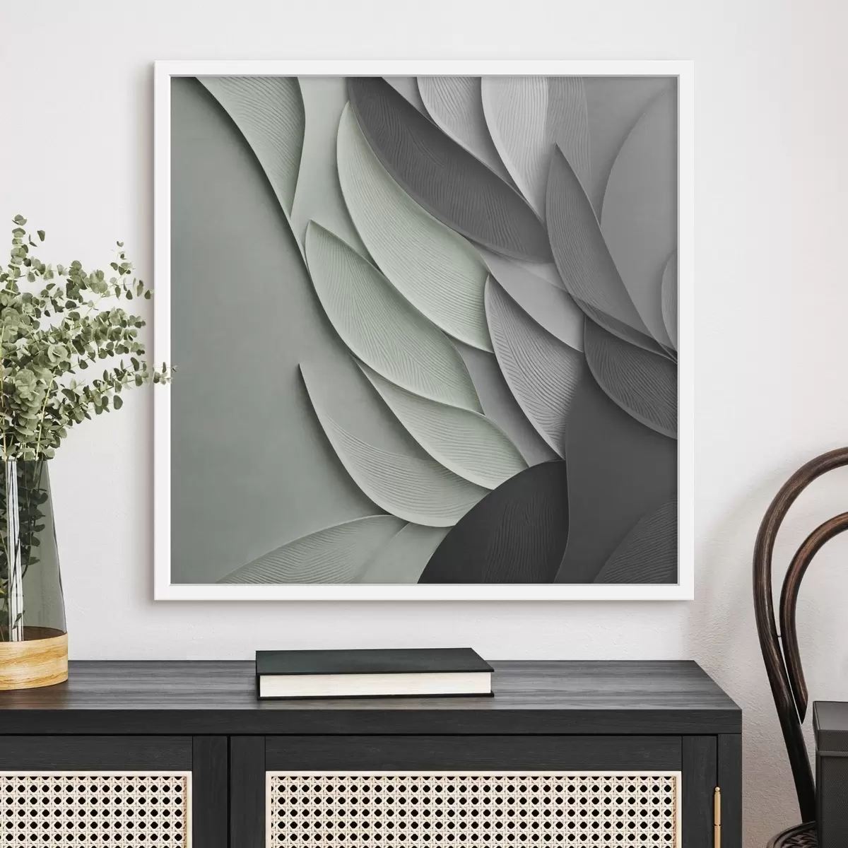 Poster Frunze stilizate, în nuanțe de gri, alb și verde pal Nr f48412