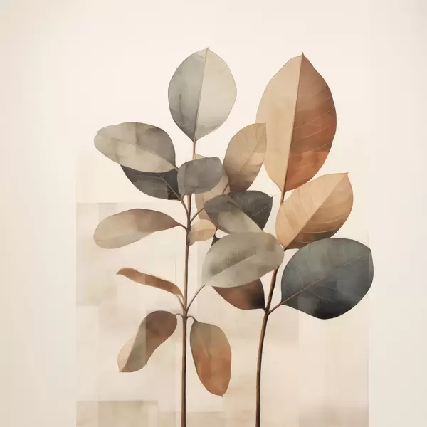 Poster Plante înalte cu frunze ovale, în nuanțe discrete, cu forme dreptunghiulare abstracte Nr f48413